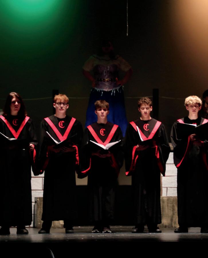 the performance, Central Chamber Choir, led by Mr. Eichenberger, provided background music, applying additional suspense, curiosity, and character to the play.
