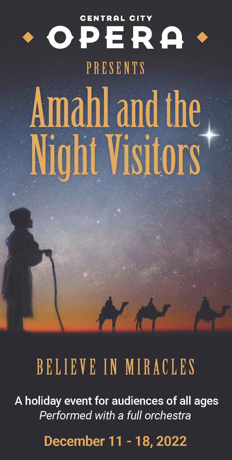 This December, Central City Opera is pleased to present a new production of the enduring, family-friendly opera, Amahl and the Night Visitors. This opera by Gian Carlo Menotti is the story of a magic star, a shepherd boy, and how unselfish love and good deeds can work miracles. The production will be presented at various times in three dif ferent locations.