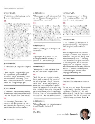 If you could change the mindset of people interviewing a blind person, what do you want them to see? EC: