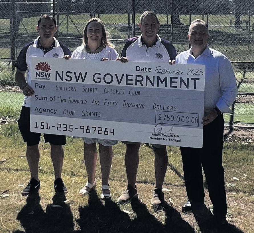 Member for Terrigal Adam Crouch with candidate for Gosford Deanna Bocking and executives from the Southern Spirit Cricket Club