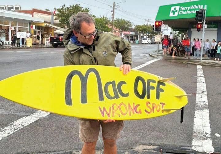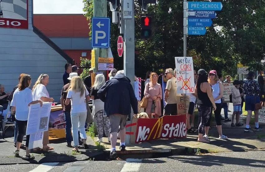 Hundreds gathered at Toukley on Sunday, November 23, to join in a community protest opposing a proposal to build a McDonald’s restaurant on the corner of Evans Rd and Main Rd.