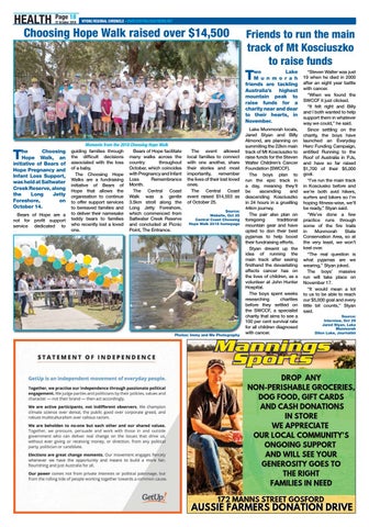 HEALTH Page 18 Choosing Hope Walk raised over $14,500 31 October, 2018