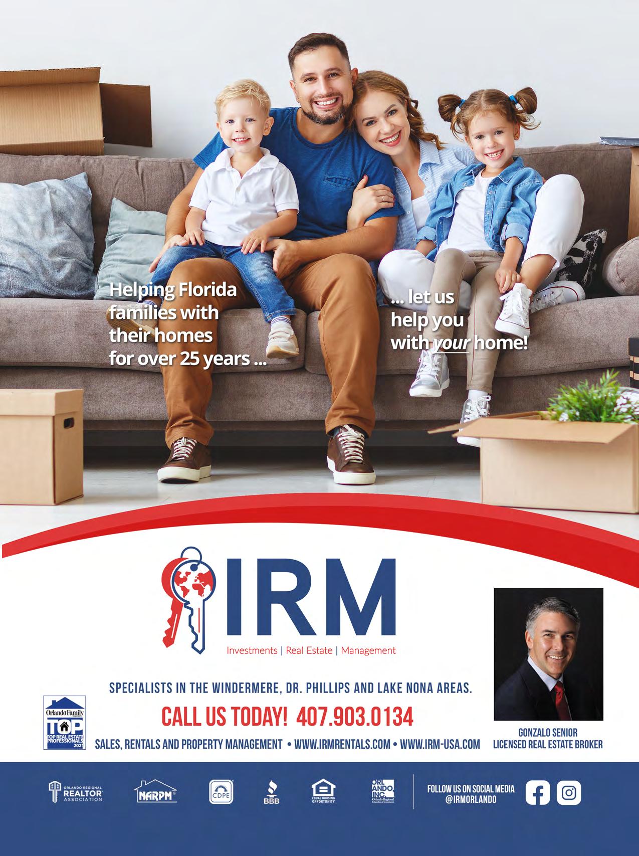 Follow us: • facebook.com/centralfloridalifestyle • instagram.com/central_florida_lifestyle • twitter.com/cflifestylemag CONTACT US FOR ADVERTISING INFO 407-449-2022 www.CentralFloridaLifestyle.com Lifestyle® publications comprises multiple monthly editions, each mailed directly to homes and businesses throughout Central Florida. Lifestyle® publications are published monthly by Lifestyle® CFL. Copyright 2022. All rights reserved. ALTAMONTE LIFESTYLE®, COLLEGE PARK LIFESTYLE®, HORIZON WEST LIFESTYLE®, LAKE NONA LIFESTYLE®, METROWEST LIFESTYLE®, OAKLAND LIFESTYLE®, WINDERMERE LIFESTYLE®, WINTER GARDEN LIFESTYLE®, WINTER PARK LIFESTYLE® and CENTRAL FLORIDA LIFESTYLE® are federally registered trademarks. Reproduction or use, in whole or in part, of the contents of this magazine or of the trademarks of Lifestyle® publications without written permission of the Publisher is prohibited. Lifestyle® publications makes every effort to ensure the accuracy of content published. Neither the publishers nor advertisers will be held responsible for any errors found herein, and the publishers accept no liability for the accuracy of statements made by advertisers in ads and/or in paid promotional features. September 2023. www.CentralFloridaLifestyle.com 3 Proud Member of: