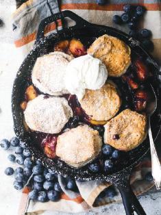 6. Place the cobbler into the oven and bake for 30-35 minutes until biscuits are golden brown and cooked through underneath.