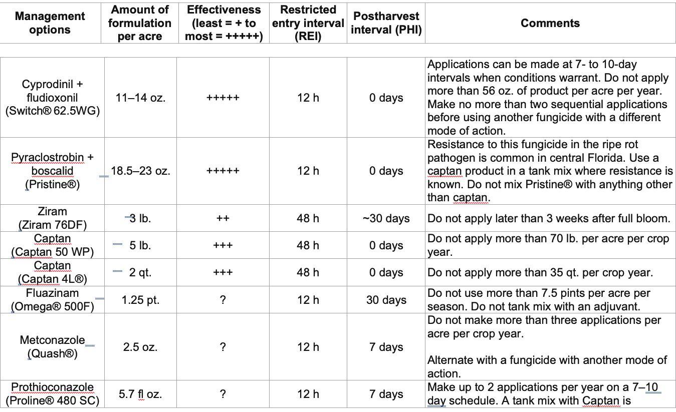 The University of Florida has released the 2022 Florida Blueberry Integrated Pest Management Guide, updated and revised from the previous version released in 2019. It has been reformatted with diseases and pests listed by stage of plant development at the beginning, followed by tables for suggested chemical controls for each listed disease and insect/mite pest. Suggested controls for certain items not previously addressed have been added. Also included are sections on weed control and hydrogen cyanamide. This publication is available at https://edis. ifas.ufl.edu/publication/ hs380.
