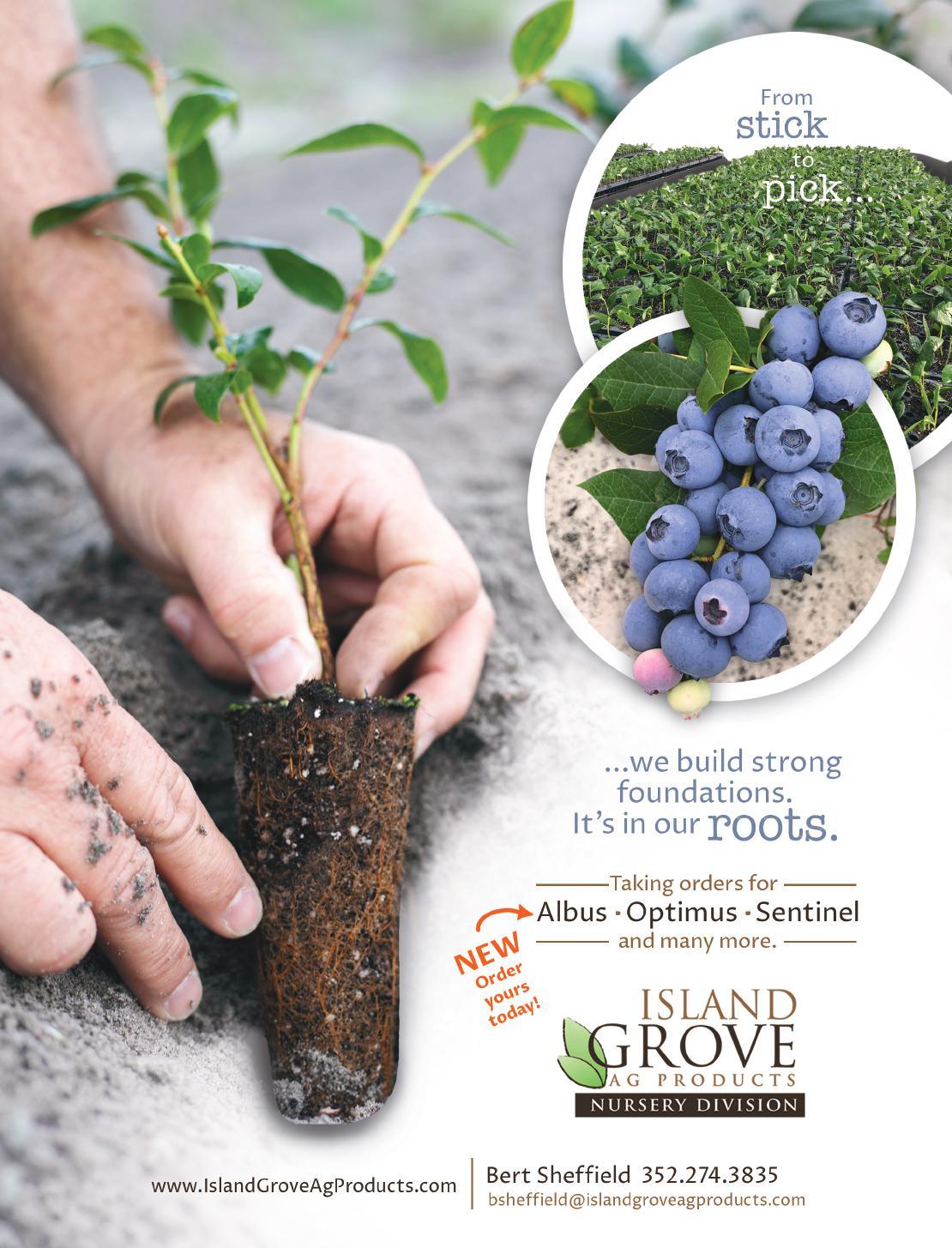 Agri-Starts, Inc. is a licensed propagator of Florida Foundation Seed Producers, University of Georgia Research Foundation, and University of Arkansas genetics. COME VISIT US ANYTIME! BLUEBERRIES BLACKBERRIES & MORE! AGRISTARTS.COM (407) 889-8055 - info@agristarts.com 1728 Kelly Park Rd. - Apopka, FL 32712 Agristarts Ad 7.5x5.indd 1 9/9/16 5:59 PM