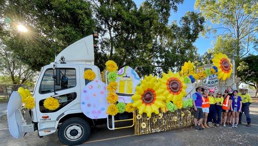Easter Sunflower Festival 2023: The Central Highlands Easter Sunflower Festival is an annual multi-event festival As part of the week-long festivities’ council's PRE team is responsible for hosting a dinner with the festival committee to welcome the Canadian visitors and their families and decorate a float for the parade Staff from different departments collaborated to decorate the float, including large decorated eggs completed by the SES Cadets. Councillors, staff and their families participated on the day, handing out lollies and waving to the crowd Best of all, our float won and our winnings were donated to the SES cadets who helped us.