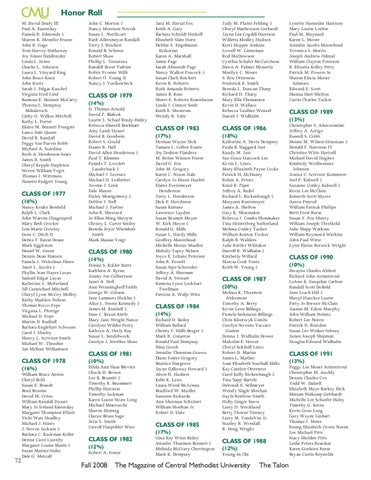 CLASS OF 1990 (10%) Dwayne Charles Abbott Richard John Armentrout LeAnn K. Farquhar Carlton Randall Scott DeBold Jane Leach Hill ◊ Sheryl Huecker Luster Patty Jo Brewer McClain Joanne M. Eiken Murphy John William Nemitz Robert Lee Noren Patrick D. Reardon Susan Lee Weiker Selway James Joseph Shipman Douglas Edward Widhalm