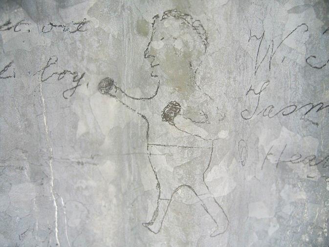 Drawing of boxer on the corrugated iron inside the hut (dated 1910)