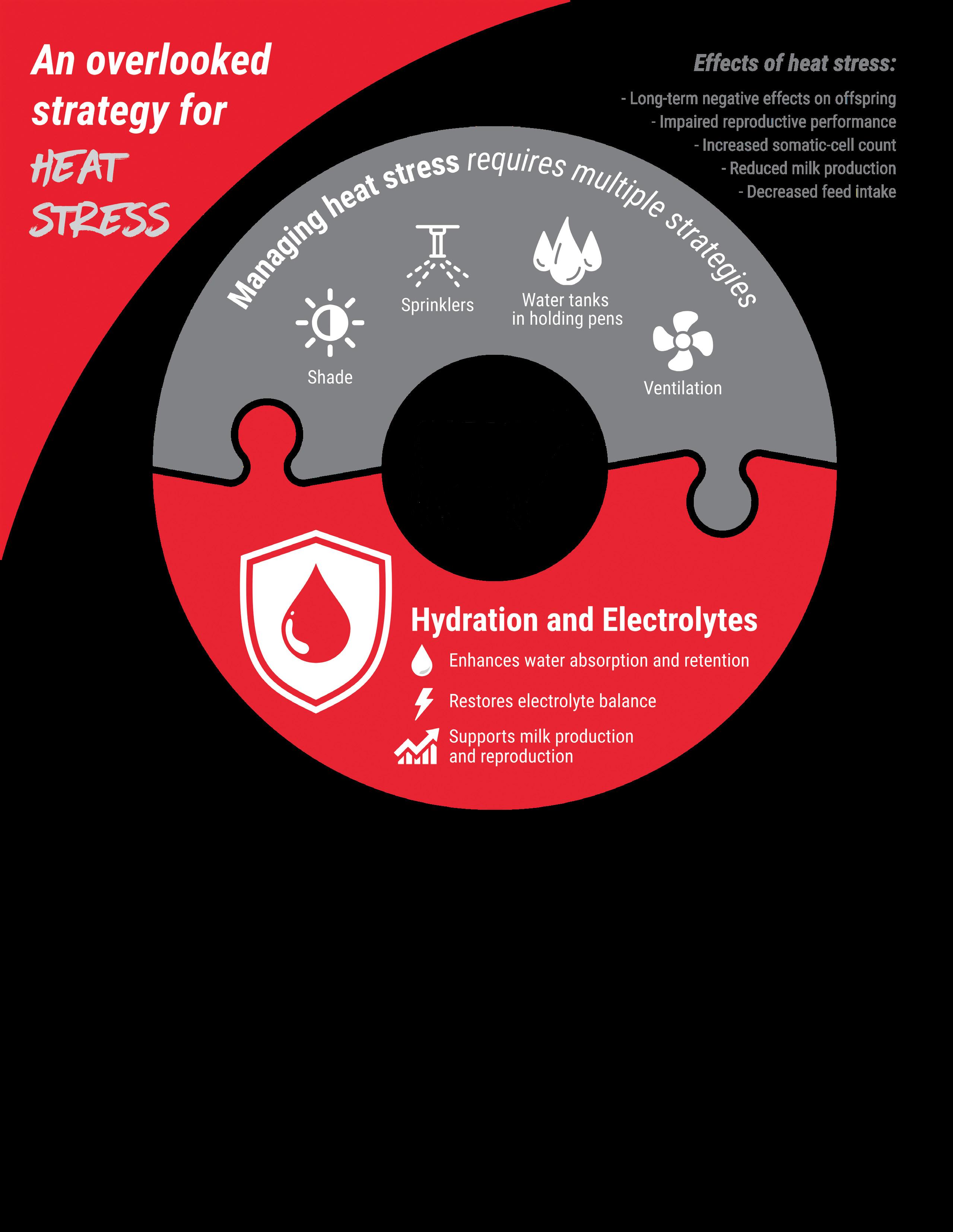 WHAT IT DOES: Promotes feed and water intake which helps restore electrolyte functions and water retention to prevent losses due to dehydration. HOW TO USE: Mix in feed or water and feed continuously through the summer or start two days before extreme heat and continue as long as needed.
