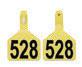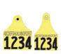 Tags are laser-ink printed and available with custom letters and numbers. The USDA Premise ID number is required. EID button only available in white. Visual tags are available in single or double sets, maxi-female with choice of large or small male: yellow, white, blue, green, orange, red, and pink. Also available with tissue sample units.