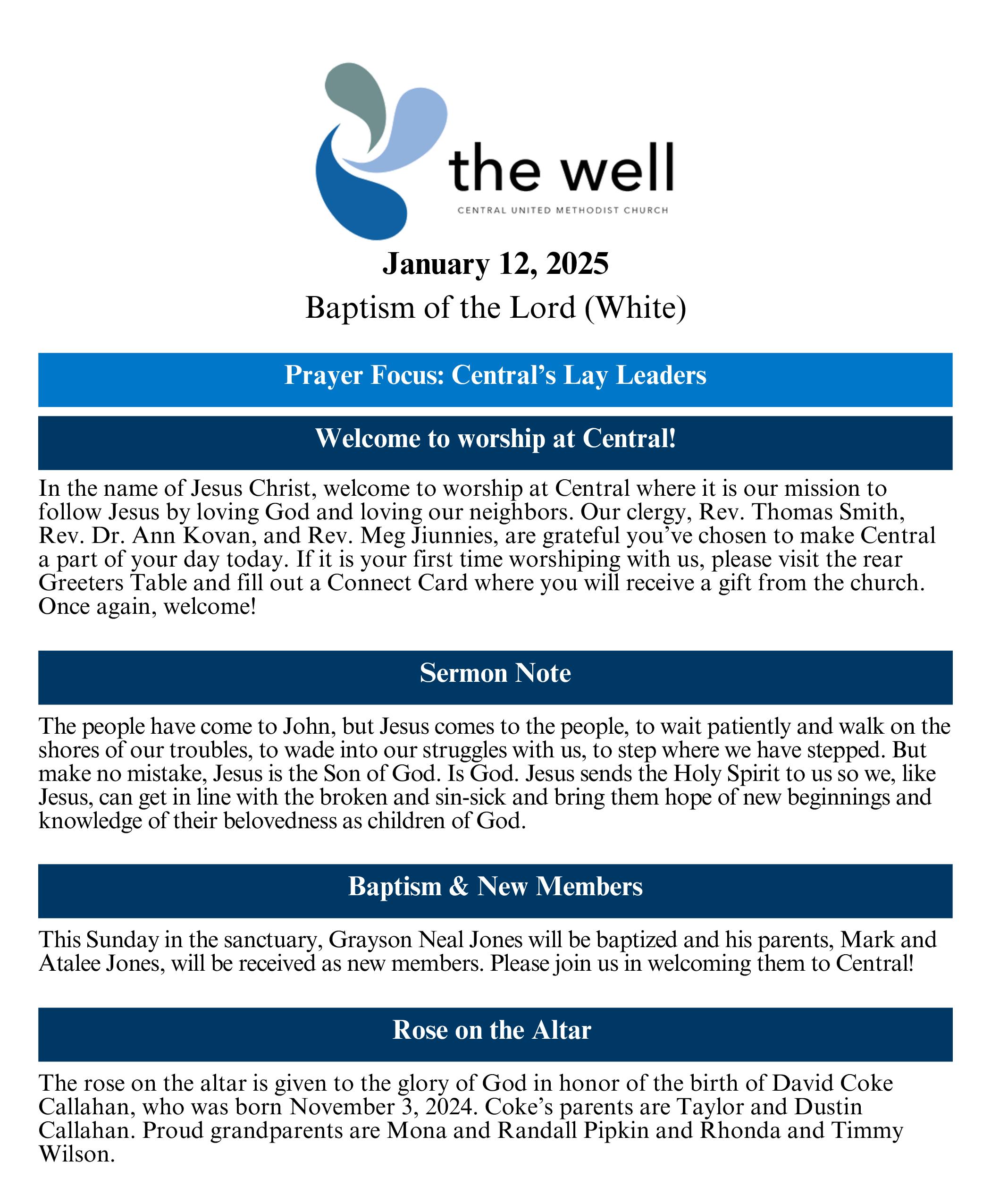 January 12, 2025 - The Well - Order of Worship - Central UMC