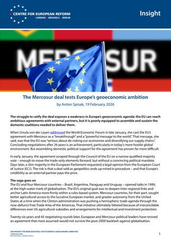 The Centre for European Reform is a think-tank devoted to making the European Union work better and strengthening its role in the world. The CER is pro-European but not uncritical. We regard European integration as largely beneficial but recognise that in many respects the Union does not work well. We also think that the EU should take on more responsibilities globally, on issues ranging from climate change to security. The CER aims to promote an open, outward-looking and effective European Union.