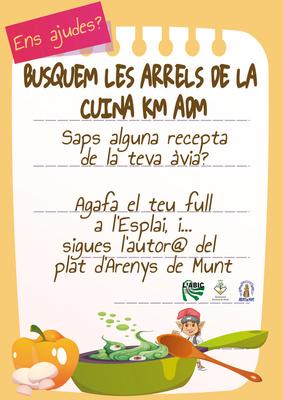 En aquesta ocasió compten amb la coŀlaboració de l’Esplai de Jubilats Verge del Remei. Amb la intenció de recuperar plats de cuina que es fessin abans, han demanat als seus associats que escriguin receptes que recordin que feien antigament a les seves cases Igualment la campanya està oberta a tota la població i qualsevol persona pot anar a l’esplai a recollir el formulari i portar-lo omplert més tard amb el nom del plat, els ingredients, com s’elabora... la única condició és que el plat estigui elaborat amb productes de proximitat