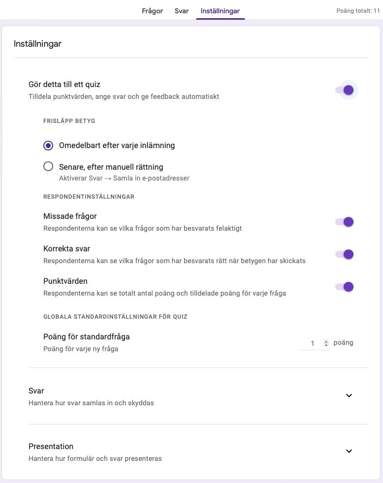”Jag har nu gjort alla ordförhör med oregelbundna engelska verb som quiz i Google formulär. Självrättande, smidigt.”