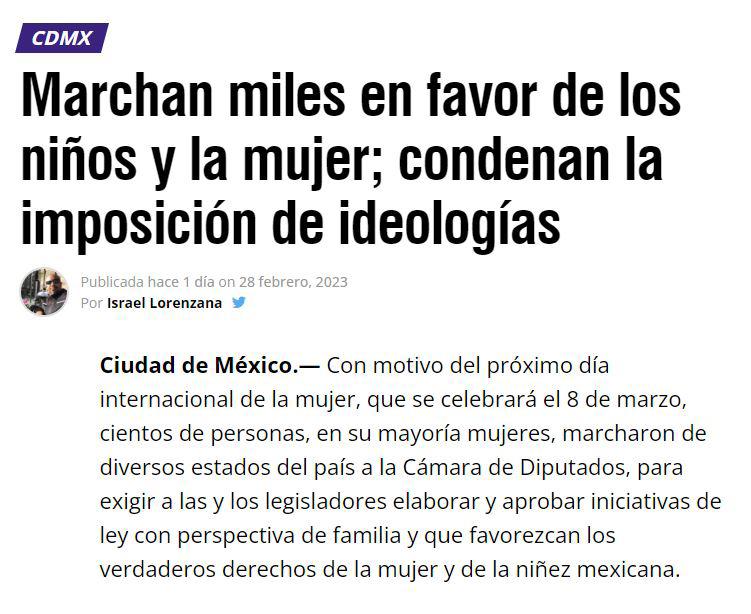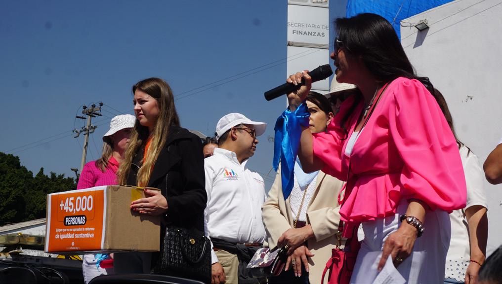 No estamos de acuerdo que un grupo minoritario quiera quitarnos los derechos que conquistamos, no somos gente gestante ni menstruante, sino que con mucho orgullo podemos decir que nacimos mujeres y nadie nos va a arrebatar nuestra identidad”, dijo enfáticamente la ex-diputada Elsa Méndez, ante miles de personas de toda la República que se dieron cita en la mañana de este 28 de febrero del 2023 frente a la Cámara de Diputados en la Ciudad de México para manifestar su repudio al dictamen para reformar la Constitución Federal en materia de igualdad sustantiva que incluye 50 iniciativas y la reforma a 28 artículos entre los que se encuentran la autonomía reproductiva, reproducción asistida, preferencia y orientación sexual, entre otros.