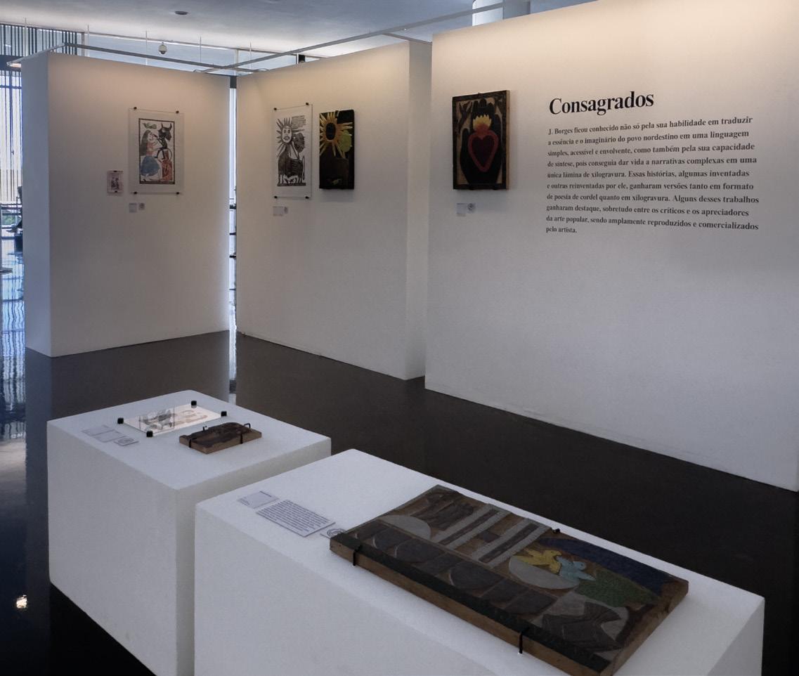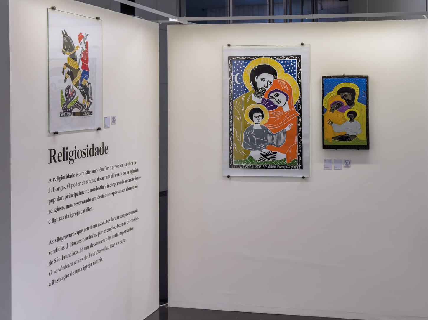 É difícil, senão impossível, realizar uma exposição de J. Borges com homogeneidade conceitual. Como artista autodidata, Borges não seguia um método específico em seu processo criativo. Sua produção, que também explora os sentimentos do ser humano e seu dia a dia, foi aperfeiçoada ao longo de 60 anos de intensa atividade laboral, resultando em mais de 1.600 obras. A exposição, dessa forma, é composta por aproximadamente 65 obras, incluindo folhetos de cordel, xilogravuras em preto e branco e coloridas, além de matrizes, abrangendo temas variados, como a condição humana, os costumes do povo, os animais e o meio ambiente. Sendo assim, nosso objetivo não é apenas apresentar um panorama da sua produção artística ao longo das diversas fases de sua carreira, proporcionando uma imersão no mundo imagético “jotaborgeano”, mas também enfatizar a importância de um artista de renome internacional, mas genuinamente popular brasileiro, cujas obras espelham o que há de mais legítimo na tradição social, econômica e cultural nordestina. As obras expostas evocam um olhar íntimo, de vivência pessoal e amorosa, que se transfigura em universalidade.