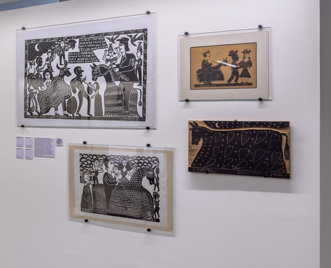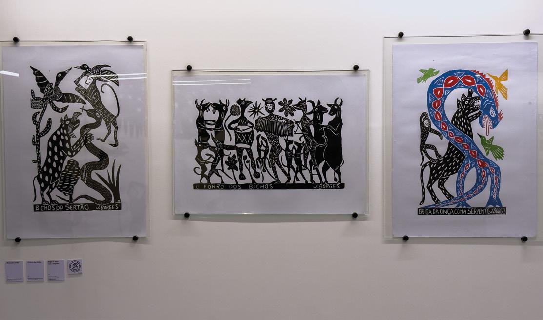 The initial exhibition concept was modest, drawing from my personal collection of 22 woodblock pieces, some prints, and 22 cordel booklets. As the exhibition grew in scope, however, we needed to source additional works from collectors and the J. Borges Memorial itself. After the artist’s death, the exhibition took on new dimensions for several reasons, primarily due to the challenge of finding pieces that would fulfill our curatorial vision, as works are becoming increasingly rare in the market. It was a challenge for us to construct thematic sections that would convey the artistic imagination within his work, encompassing themes such as religion, family, fables, beliefs and traditions of the northeastern people, as well as the region’s flora and fauna.