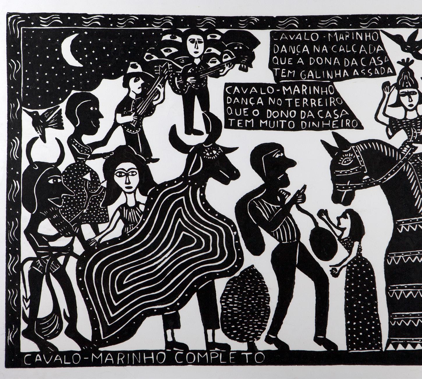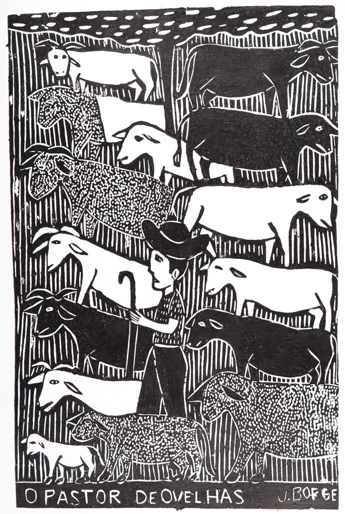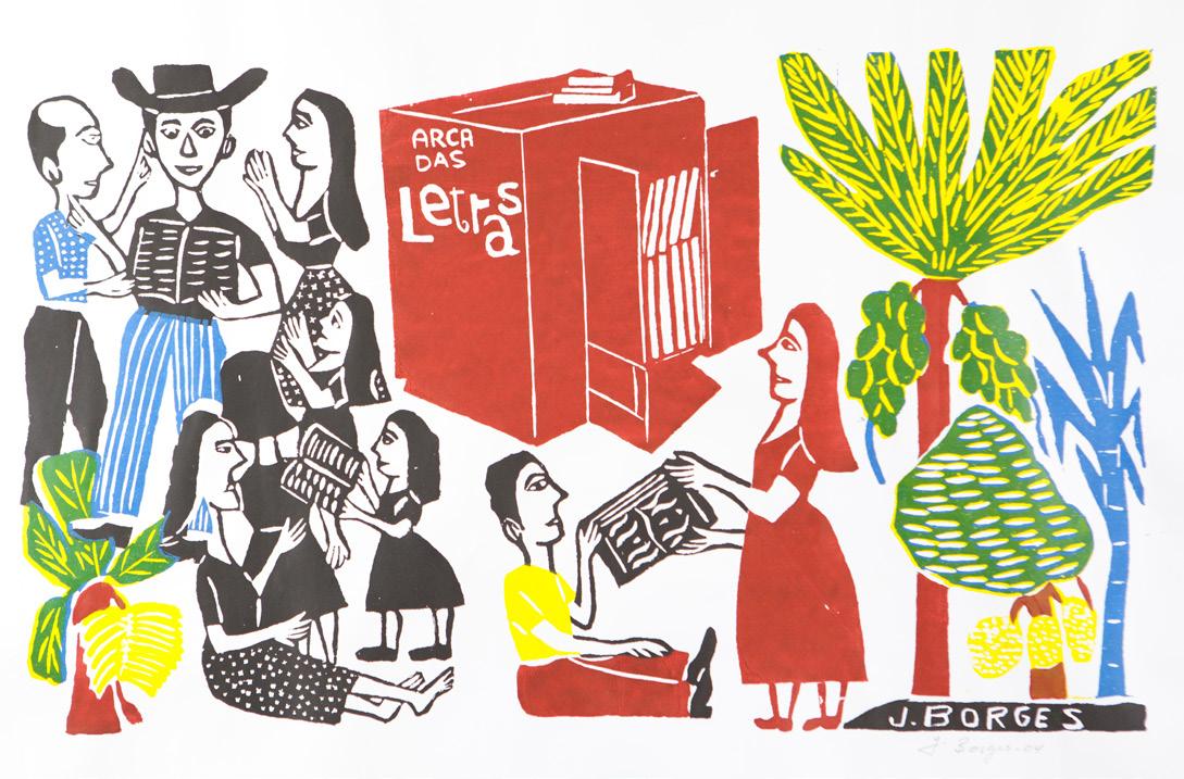 Beyond influencing several generations of printmakers in Brazil and worldwide, J. Borges illustrated works by important international writers. These included O lagarto [The Lizard] by José Saramago, Palavras andantes [Walking Words] by Eduardo Galeano, and classic children’s tales by the Brothers Grimm, published under the title Contos maravilhosos infantis e domésticos [Wonderful Children’s and Household Tales]. In 2017, he also illustrated Ariano