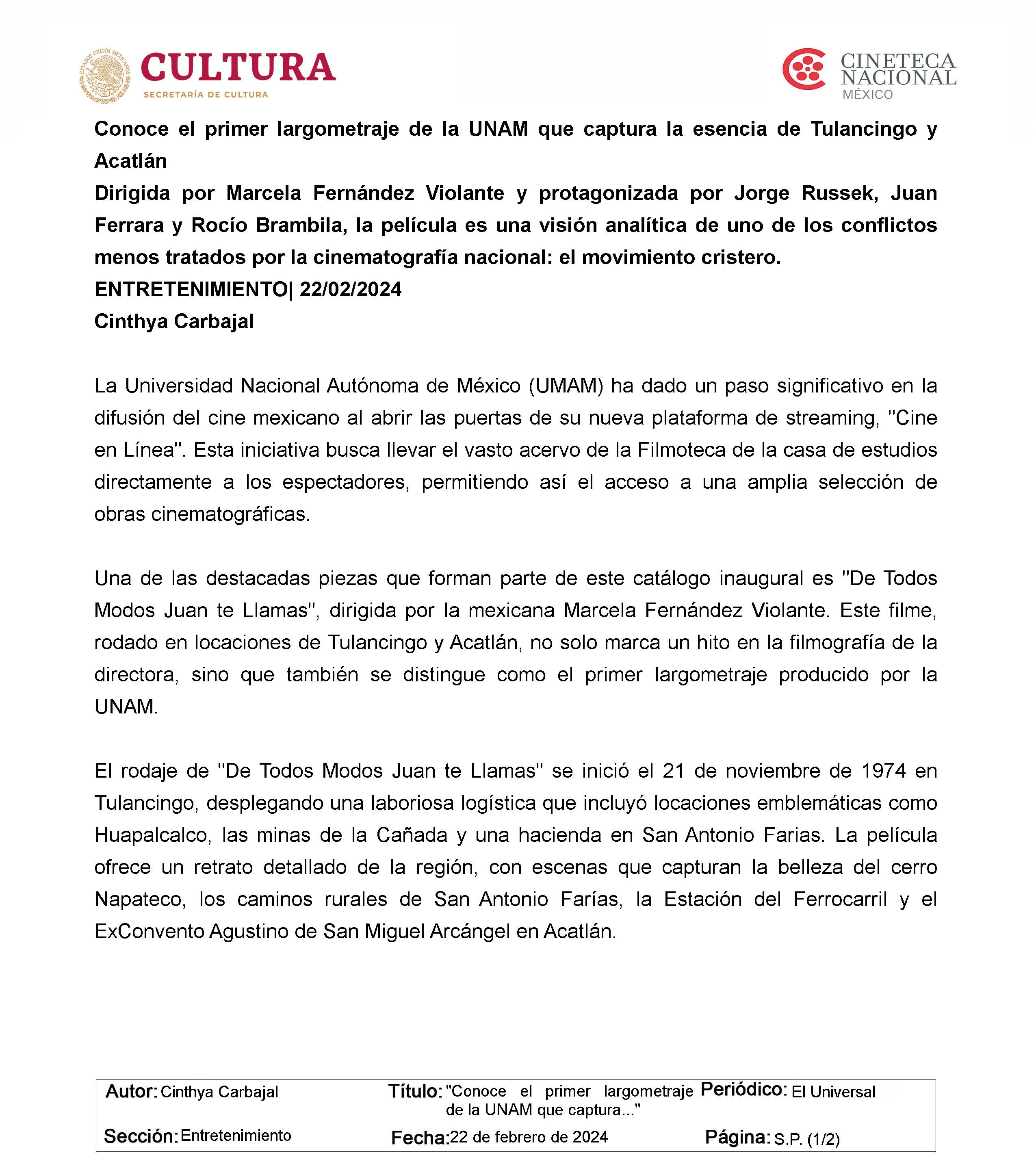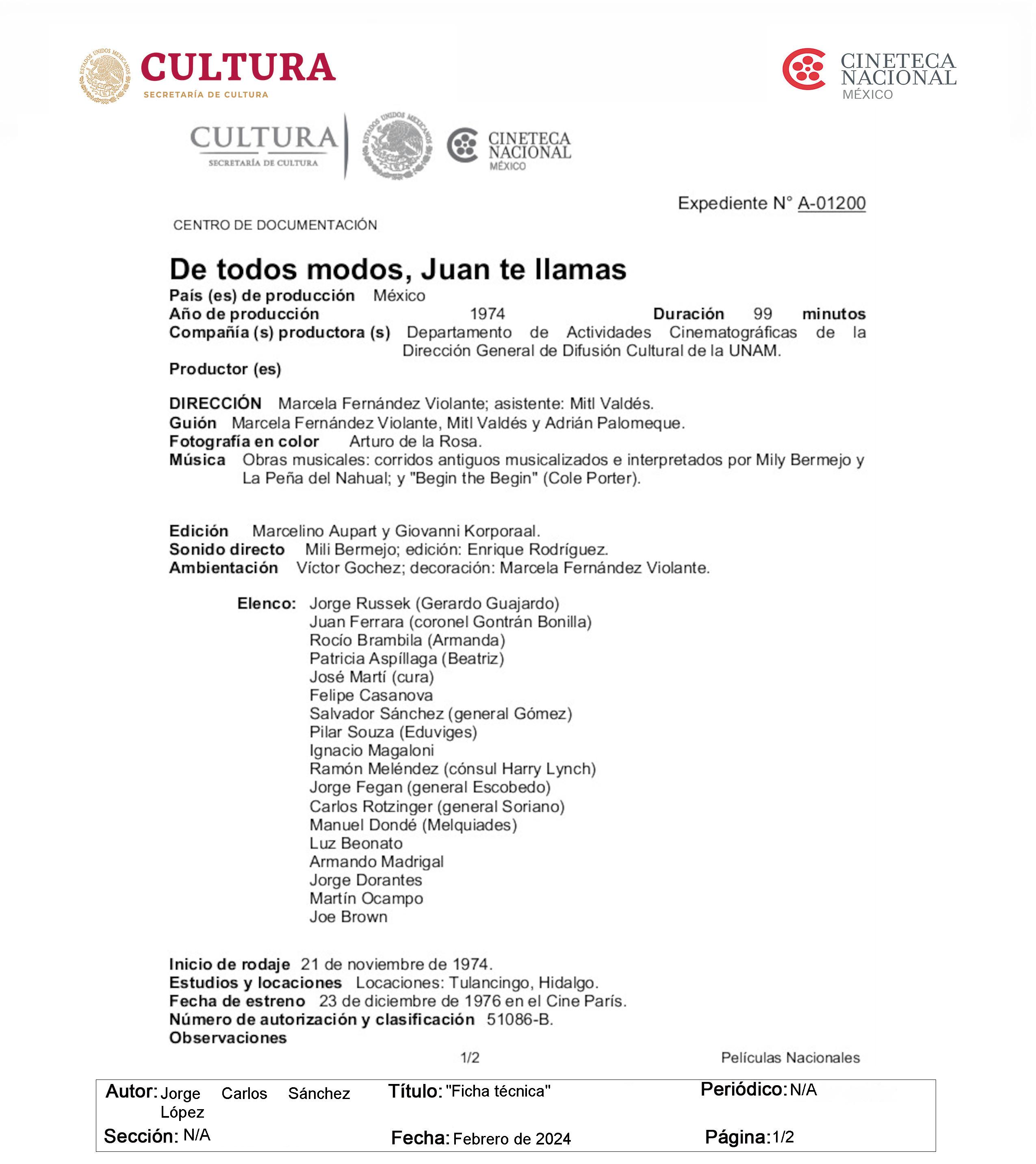 DE TODOS MODOS, JUAN TE LLAMAS (1974)