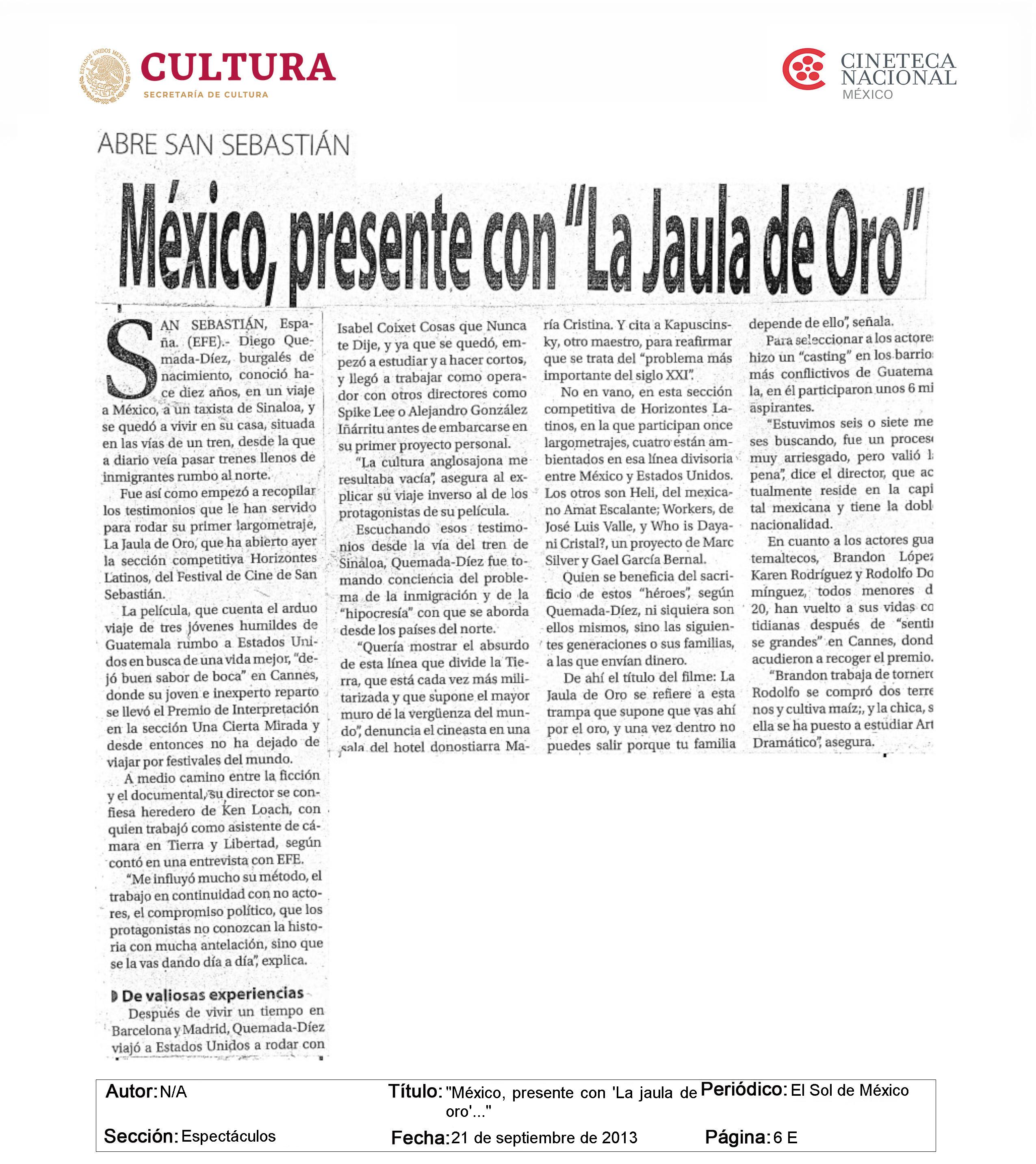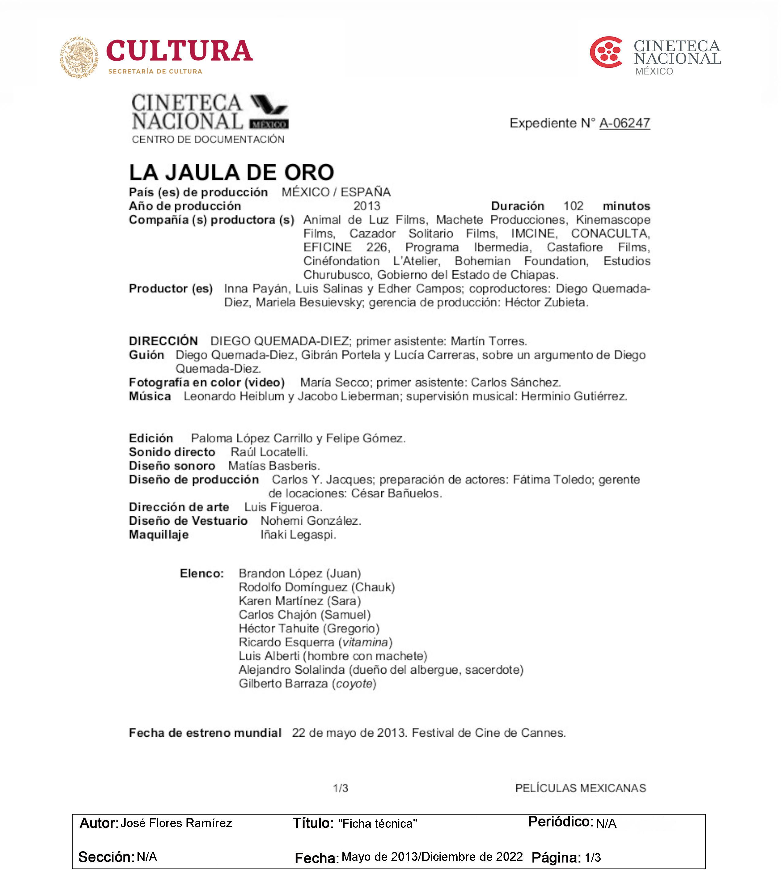 LA JAULA DE ORO (2013)