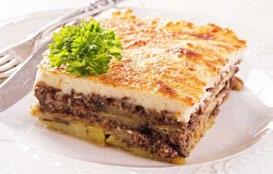 it to be served in distinct portions rather than as a kind of ‘stew’. Although there are several layers, there are two distinct sections: the bottom part centred around the sliced eggplant and the topping consisting of béchamel. Ingredients include lamb or a mixture of lamb and beef mince, onion, garlic, oregano, mint, bayleaf, cinnamon, chopped tomatoes, salt, olive oil and, of course, eggplants. To cater for vegetarians, chefs can replace the meat with a mushroom-based sauce. As regards the béchamel, this is made from unsalted butter, flour, milk, salt, egg yolks and cheese. Moussaka, served in its modern form thanks to chef Nikos Tselementes, may be regarded as a symbol of Greek independence from occupying forces. It may also be viewed as a Greek dish that has been elevated to international cuisine with award-winning restaurants in such countries as the USA, Australia, Singapore, Israel and Hungary serving it to discerning diners, and onboard cooks serving it to hungry seafarers on the high seas.