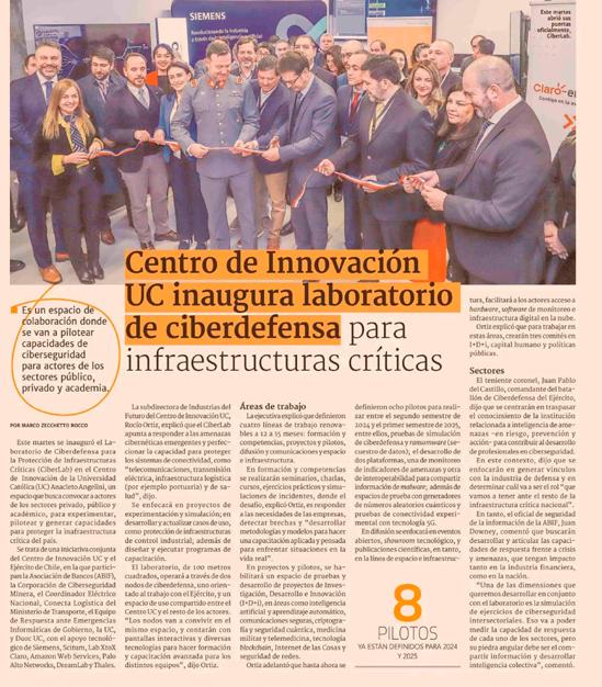El laboratorio de ciberdefensa para la protección de infraestructuras críticas (CiberLab), es una iniciativa del Centro de Innovación UC y el Ejército de Chile, en conjunto con representantes de los sectores público, privado y la academia, cuyo objetivo es desarrollar un espacio asociativo neutral que permita abordar los desafíos de ciberseguridad y ciberdefensa de las infraestructuras críticas del país.