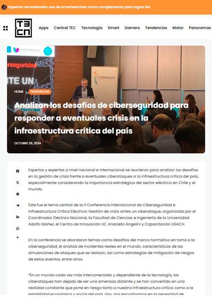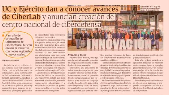 Uno de los objetivos de CiberLab es promover el conocimiento en ciberseguridad a través de eventos académicos, publicaciones científicas y colaboraciones interinstitucionales, fortaleciendo la cultura de seguridad en el ecosistema. A continuación se presenta una selección de apariciones en medios de comunicación durante el primer año de operaciones del laboratorio.