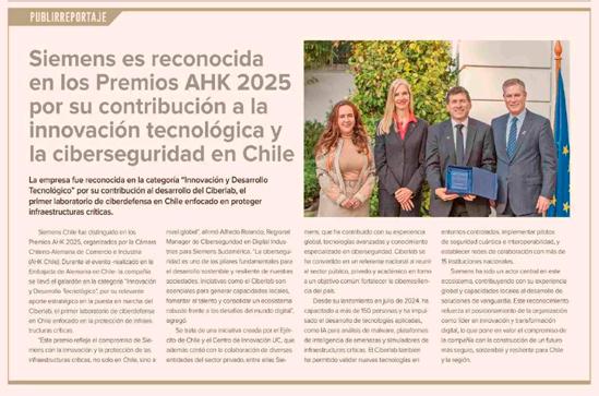 Siemens es reconocida en los Premios AHK 2025 por su contribución a la innovación tecnológica y la ciberseguridad en Chile