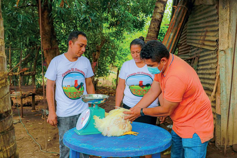 Evelyn Arely le ayuda a su esposo en el negocio de las aves, y manifestó su agradecimiento por el apoyo brindado, porque “gracias a ese apoyo hemos podido salir adelante y las capacitaciones nos han ayudado mucho para tener una visión más amplia del mercado y a menudo vender con los restaurantes, vecinos y comedores, clientes a los que ya los tenemos identificados”.
