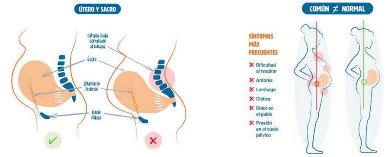 Si nuestra pelvis no está en equilibrio, el útero estará en tensión, generando un desequilibrio en las presiones uterinas que, tanto los ligamentos uterinos, como el diafragma y el suelo pélvico tendrán que compensar. Ahí es donde aparecen los síntomas más comunes del embarazo.