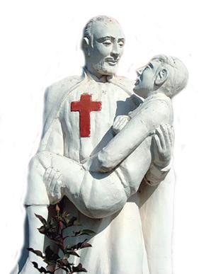 San Camilo nació en Italia en 1550, se convirtió a los 25 años, consagró su vida atendiendo a los enfermos más pobres y desasistidos. Fundó en 1586 la Orden de los Ministros de los Enfermos (Religiosos Camilos). Eligió como distintivo la cruz roja. La intuición de San Camilo fue fundar una “compañía de hombres piadosos y de bien que, no por dinero, sino voluntariamente y por amor a Dios, sirvieran a los enfermos con a que amor y cariño de una madre hacia su hijo único enfermo”. Elaboró las reglas para servir con esmero y toda perfección a los enfermos. Adoptó nuevos medios para mejor servir al enfermo. Creó un modo original de estar frente a Dios, inspirado en el Evangelio de San Mateo: ‘Cuanto hicieron a uno de estos hermanos míos más pequeños, a mí me lo hicieron’.