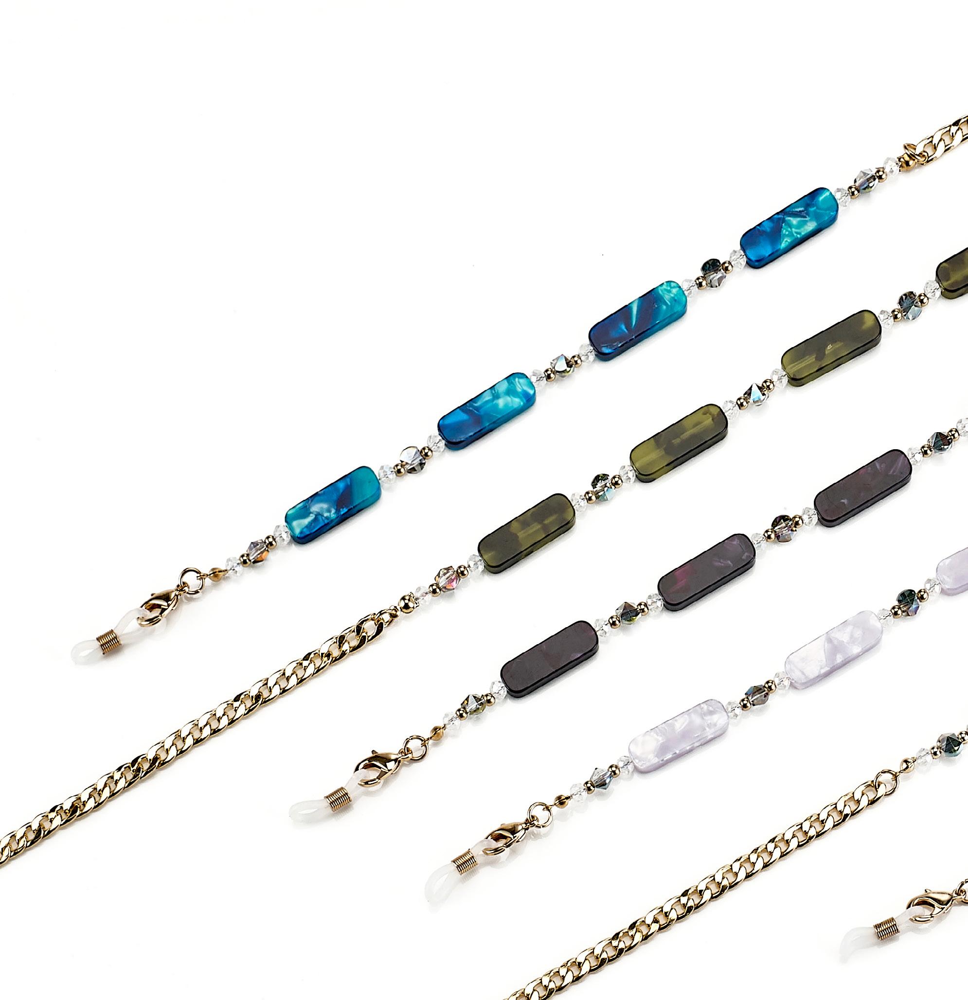 6 ultra-lightweight acetate chains, perfect for sunglasses and glasses. They come complete with a microfibre pouch.