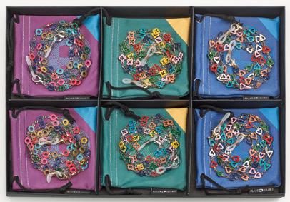 6 Tubular chains made from a weave of rhinestones and metal beads. Supplied with a practical display tray and microfibre pouch.