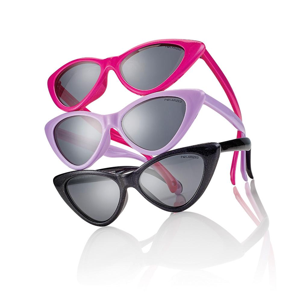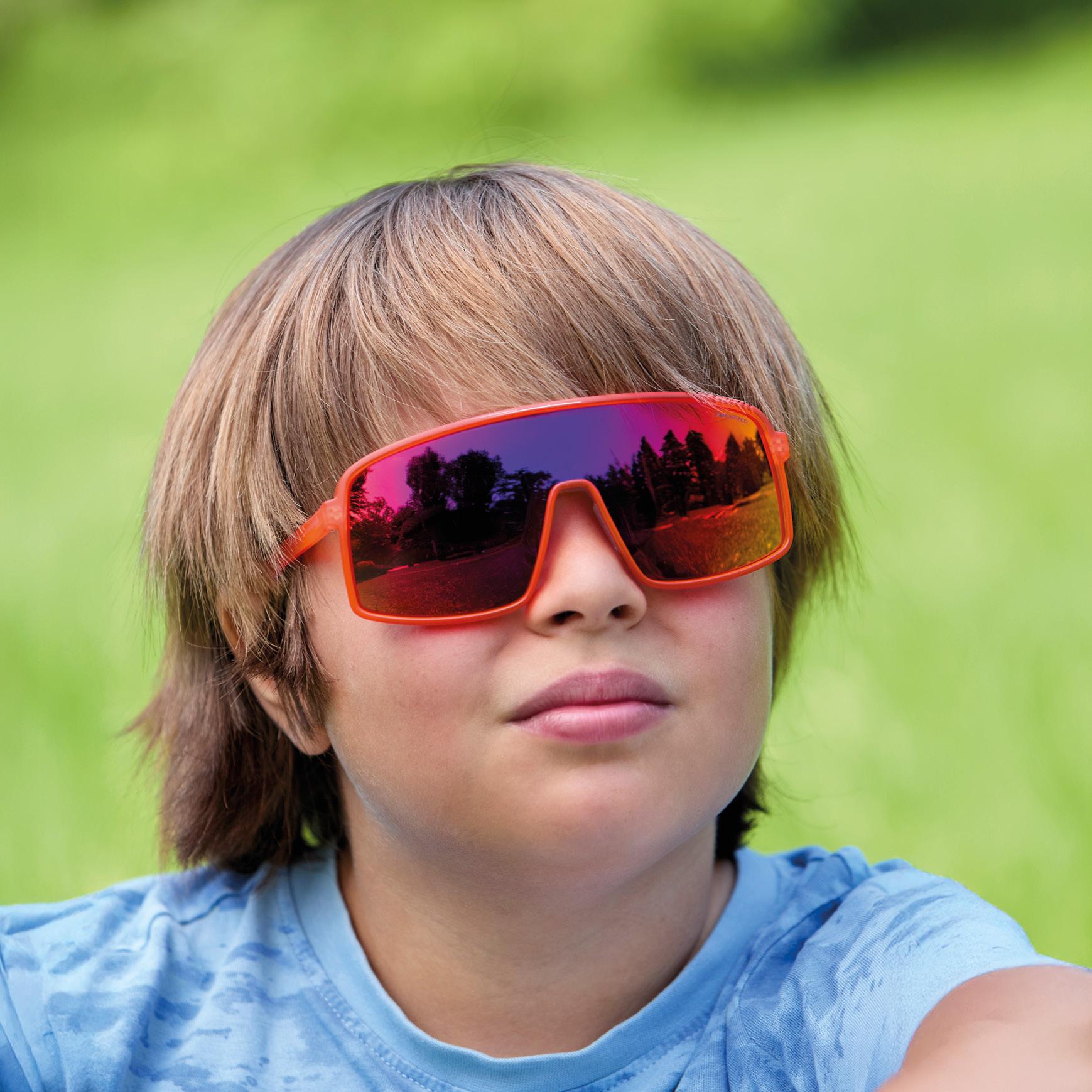 Lightweight, flexible and durable TR90 sunglasses with new design of wrap-around temples for a better fit. New colours taking inspiration from the graphic elements of teenagers’ favourite styles. Polarized filters with UVA-UVB protection for visual comfort.