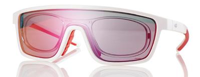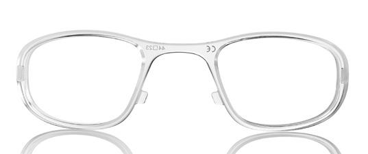 Wrap-around TR90 sunglasses. Removable inner clip-in in trasparent TR90, suitable for mounting prescription lenses. The clip-on is strong and stable thanks to the hook on the bridge. Wide angle lens, for a more open filed of vision.