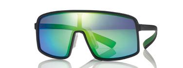 One-piece soft rubber sunglasses without metal parts and latex with Dynamic Grip Curve. Supplied with silicone strap band.