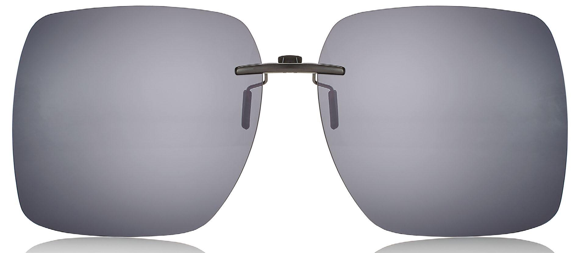 Clip-On con meccanismo minimale, lenti ritagliabili e terminali antigraffio. Filtri polarizzati con la massima protezione dai raggi UVA-UVB.