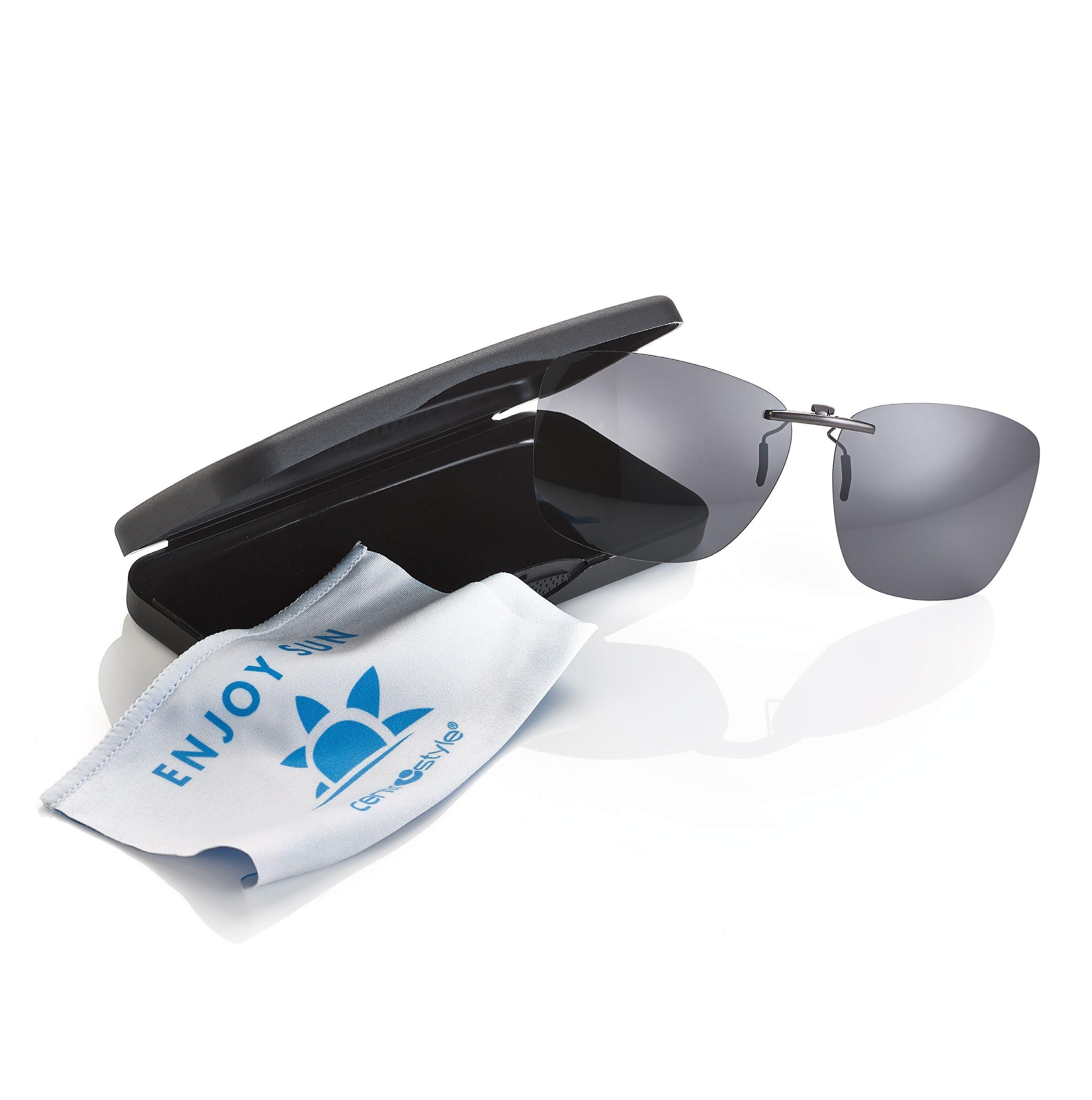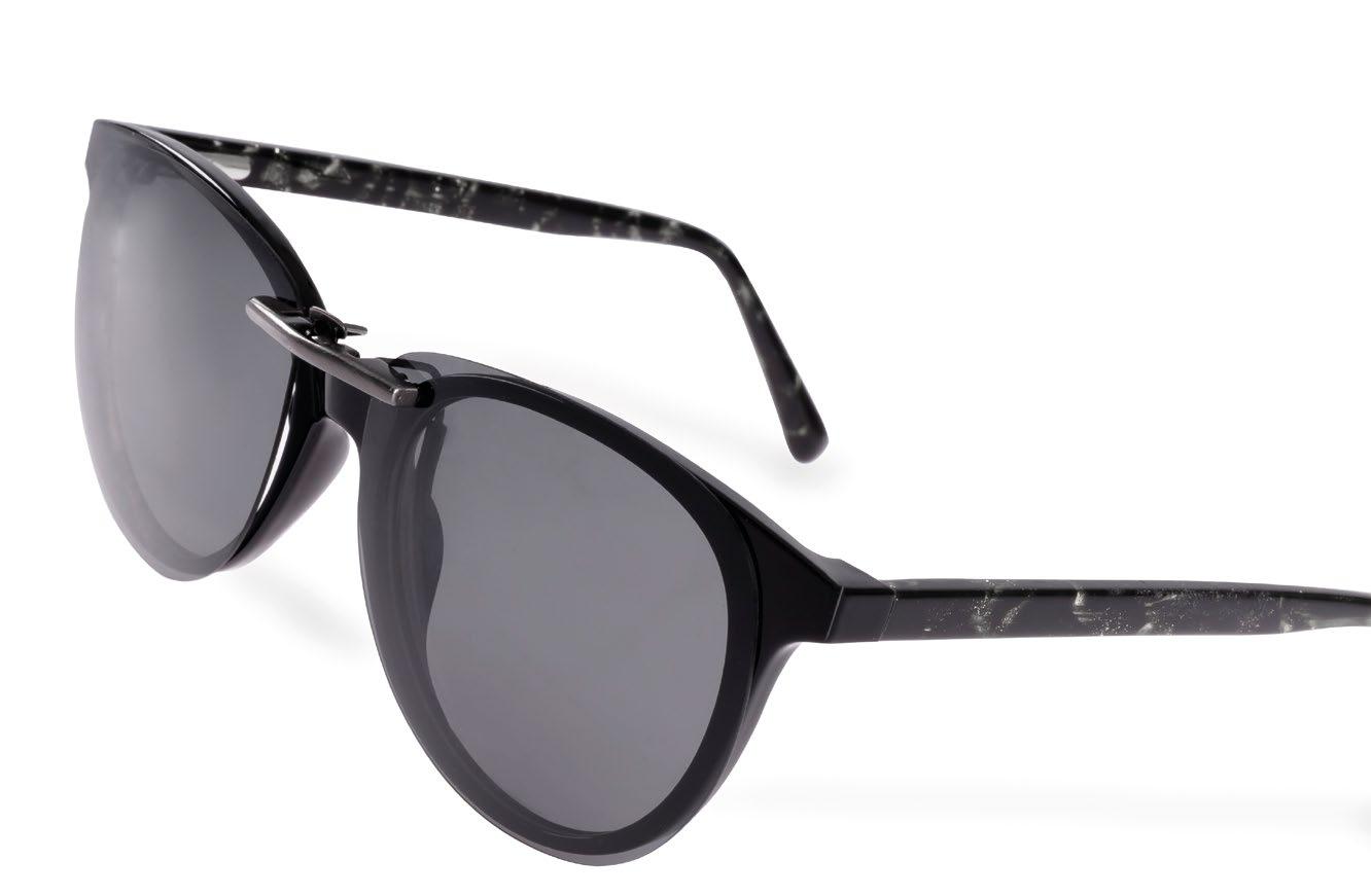 Clip-On con meccanismo minimale, lenti sagomabili e terminali antigraffio per montature in plastica. Filtri polarizzati con la massima protezione dai raggi UVA-UVB.