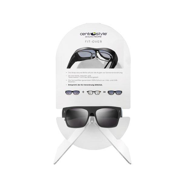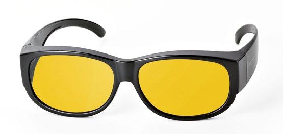 To be worn over prescription eyewear. Protect the eyes 100% from UVA and UVB sun rays. Lightweight and comfortable. The wrap-around shape and polarized quality filter reduce eye fatigue.
