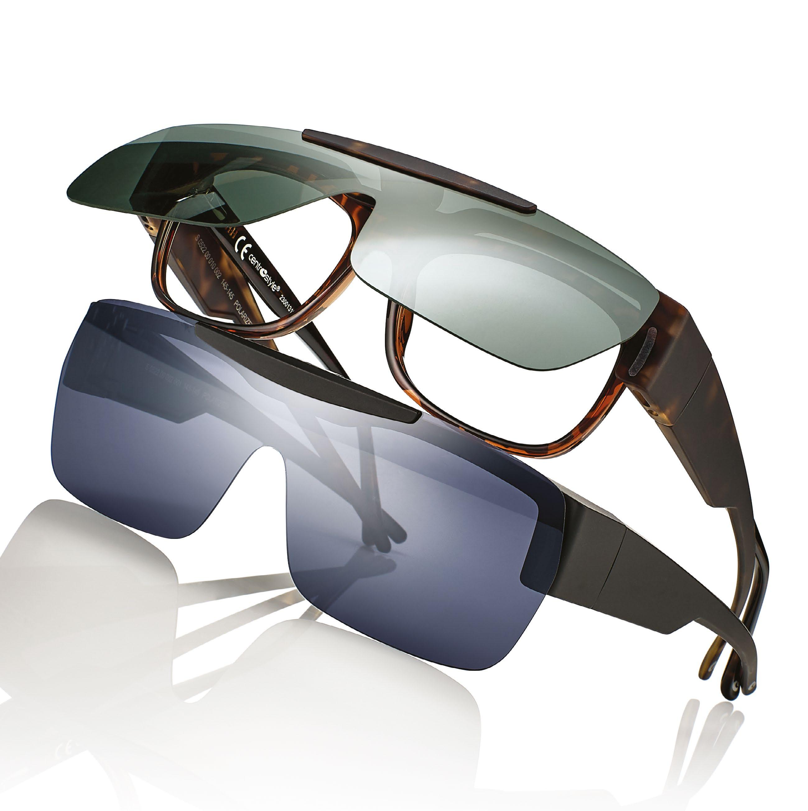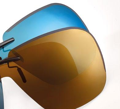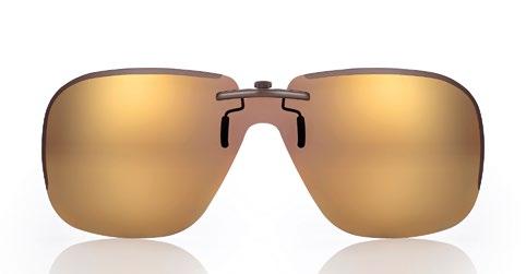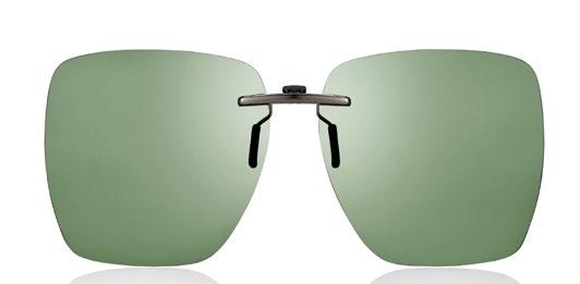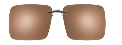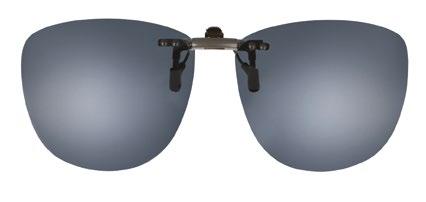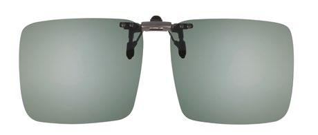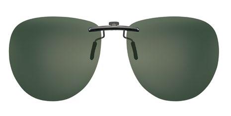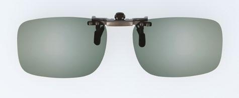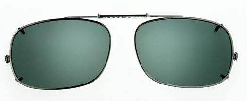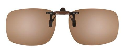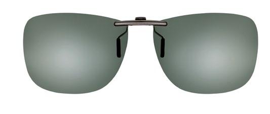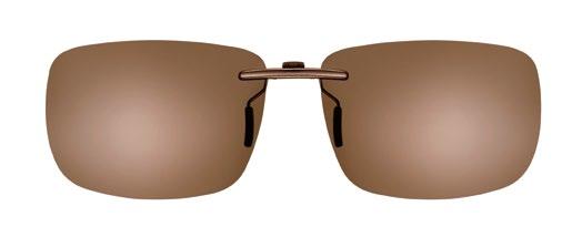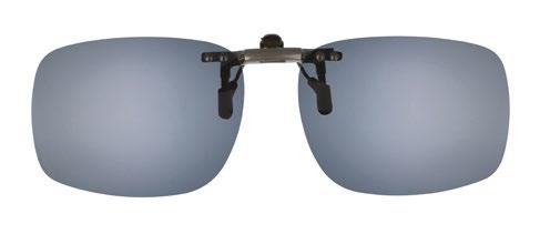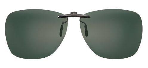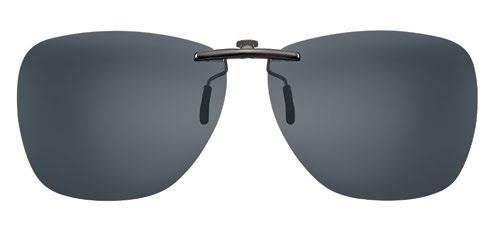 Clip-Ons with minimal mechanism, trimmable lenses and anti-scratch clips. Polarized lenses for maximum protection against UVA and UVB rays.