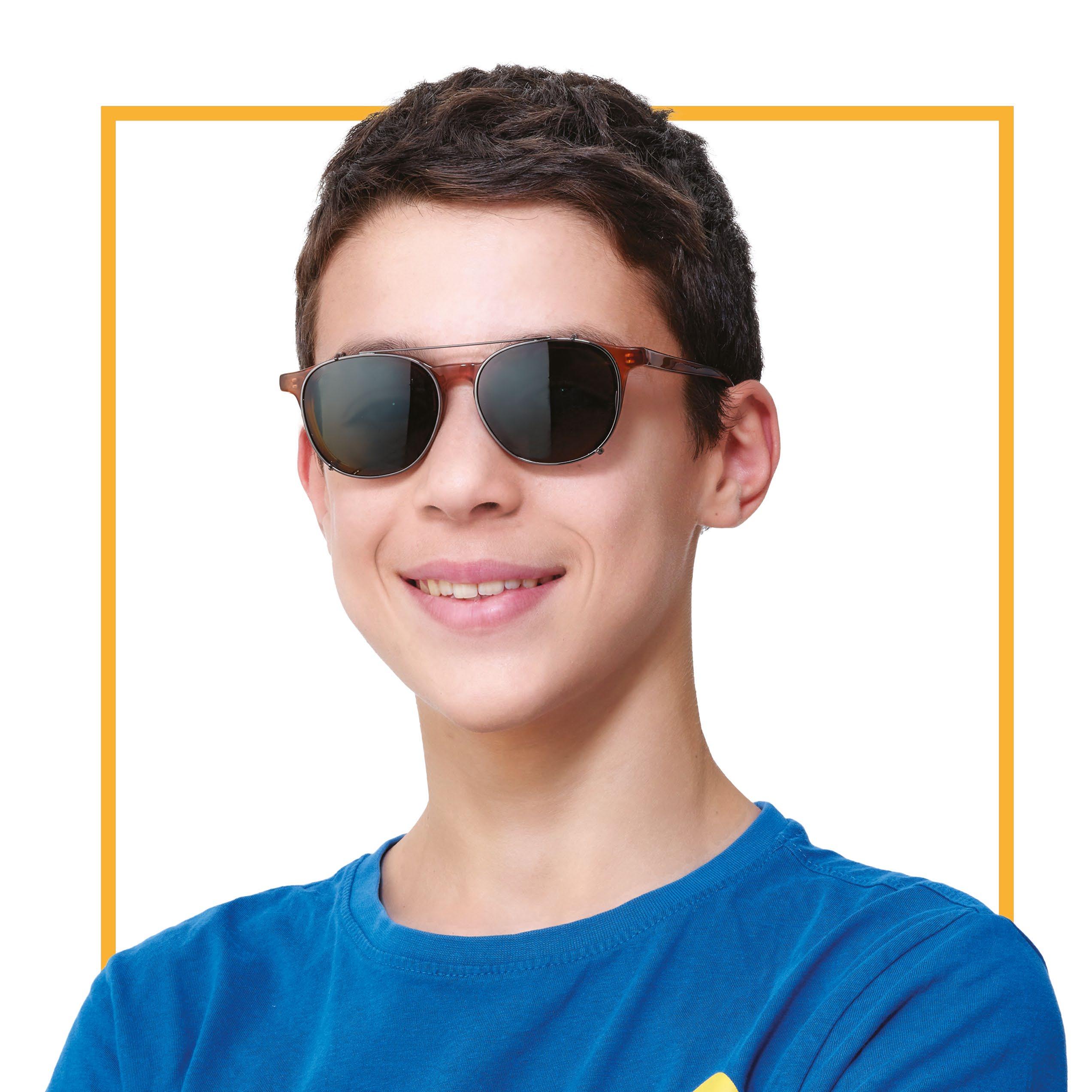 Clip-ons with minimal mechanism, trimmable lenses and anti-scratch clips. Easy to put on and take off by pressing the central spring. Polarized filters for maximum protection against UVA and UVB rays.