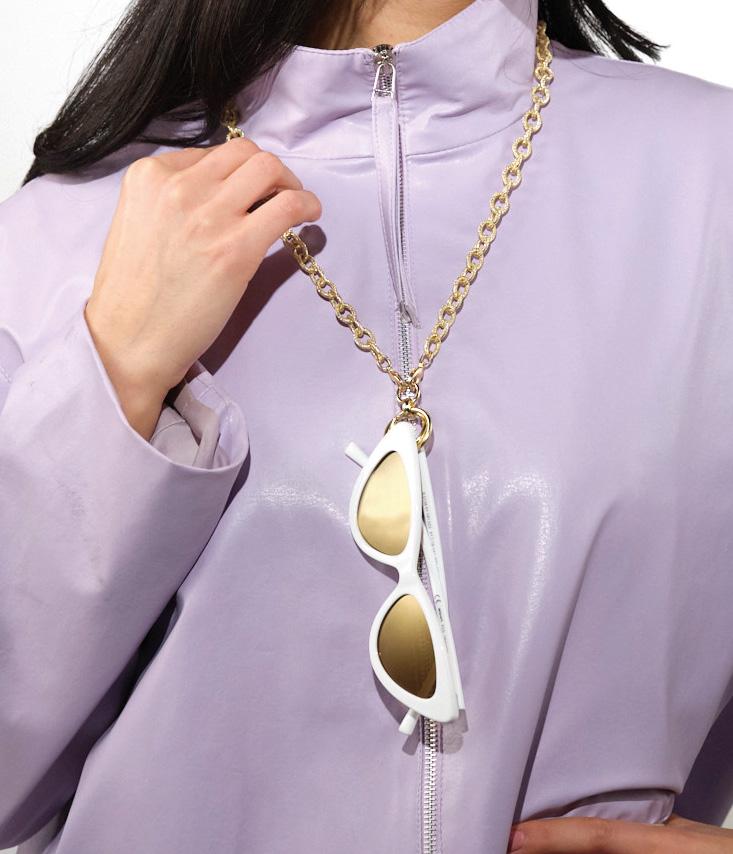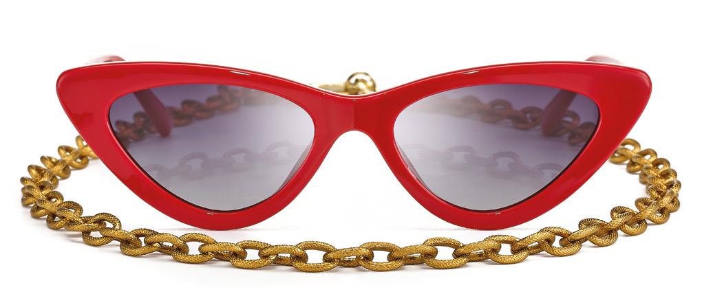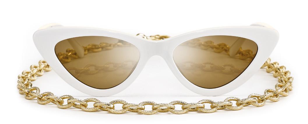 Gli occhiali da sole della collezione Paris, eleganti e leggeri con lenti polarizzate, si fondono in una rivisitazione della classica forma anni 50 reinterpretata in stile moderno. Si distinguono per le forme alla moda e l’associazione di preziose catenelle Made in Italy in metallo per un prodotto di personalità.