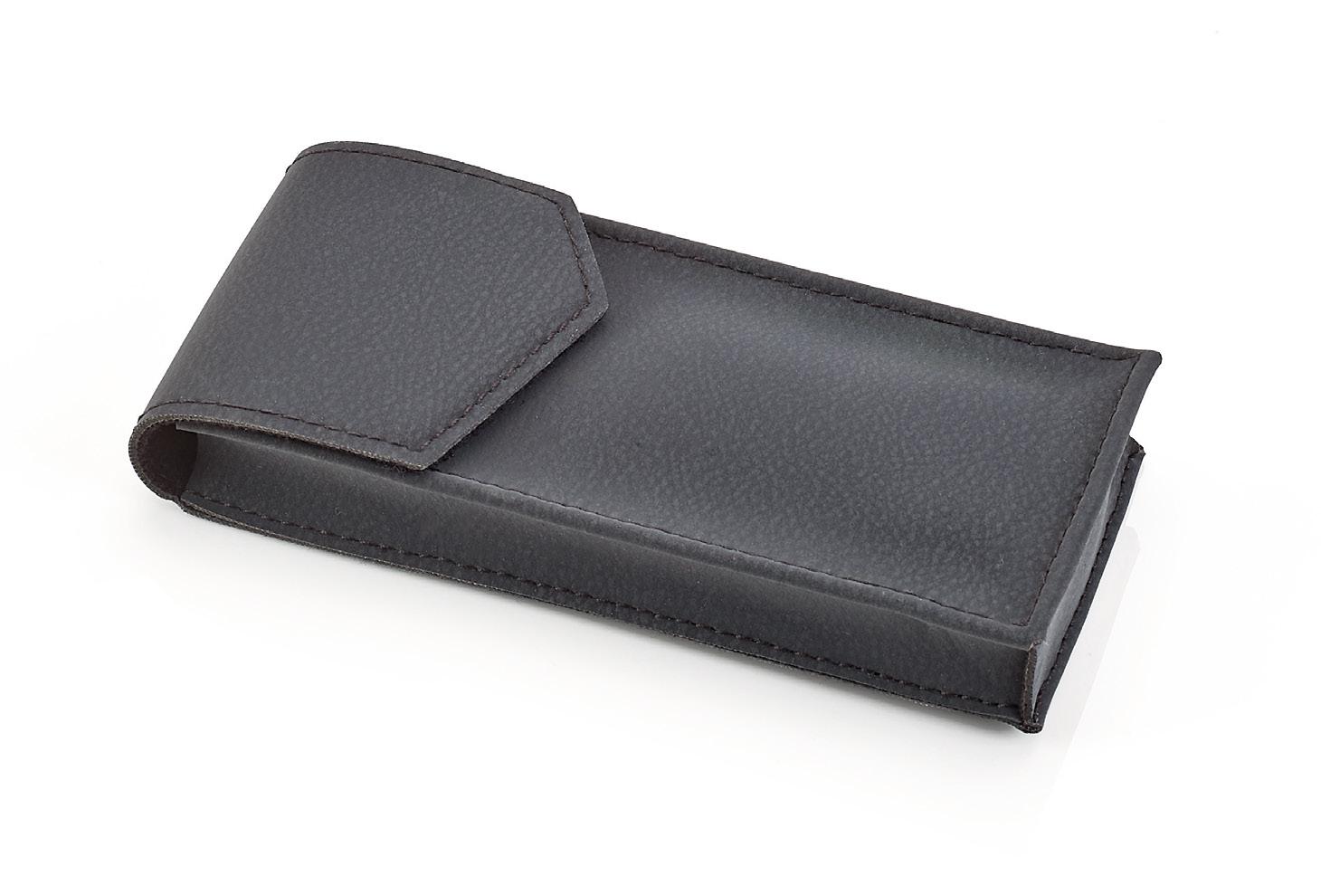 Soft leatherette case.