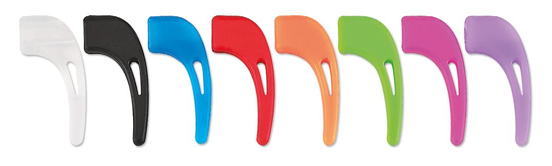 Ferma occhiale regolabile in silicone anallergico. Adatto a terminali di misura media.