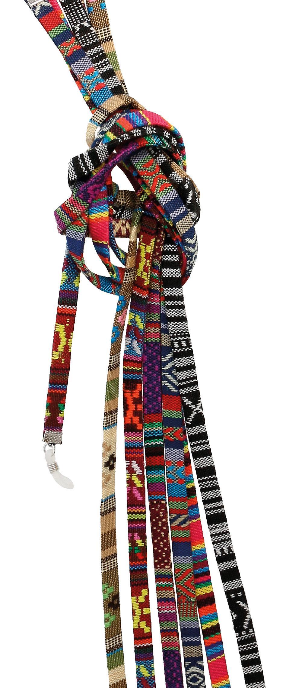 Cordoncini treccia in tessuto fantasia etnica, ideali per occhiali da sole, per un look giovane e sportivo. Ref. 74108