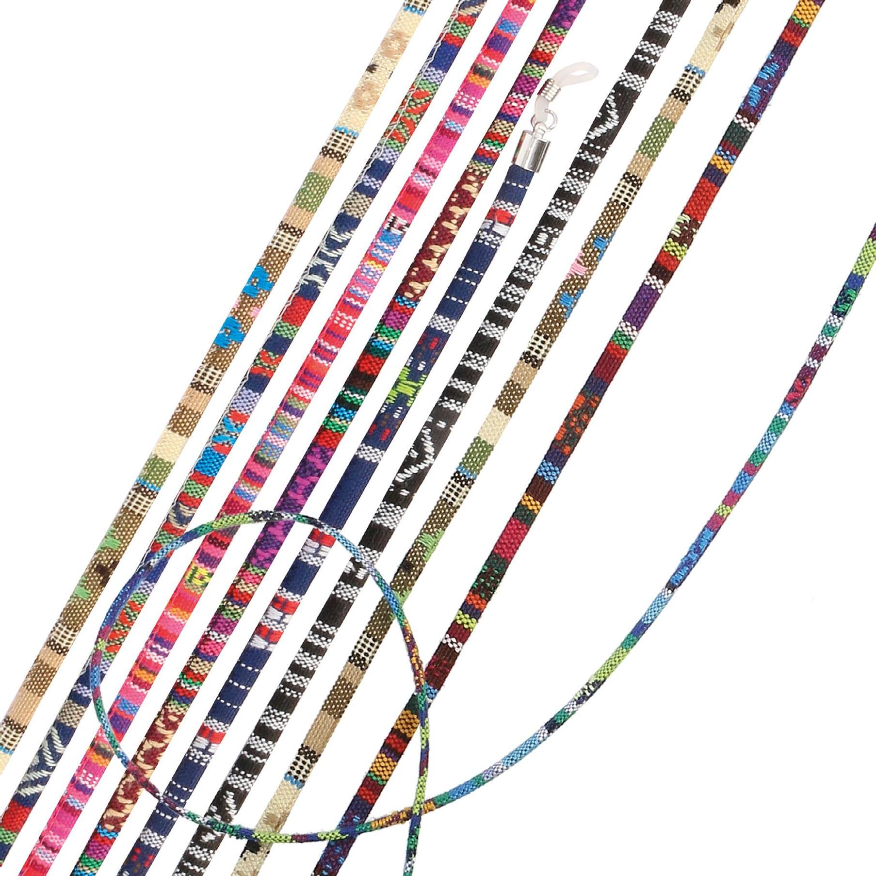 Set of 50 cords for glasses assorted in the following colours: grey, red, brown, blue, green, purple, orange, fuchsia. REACH TESTED