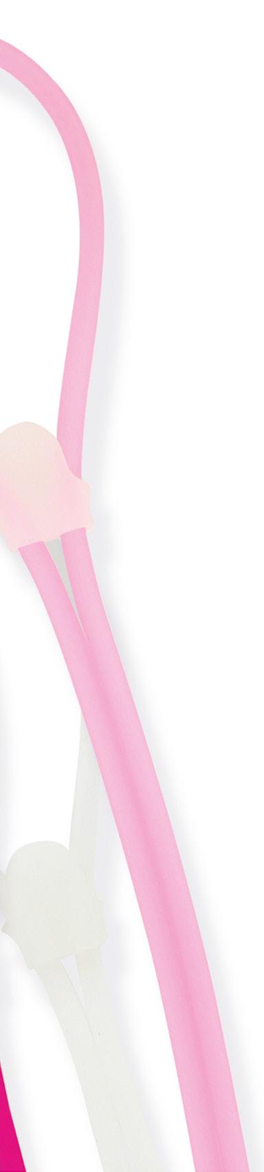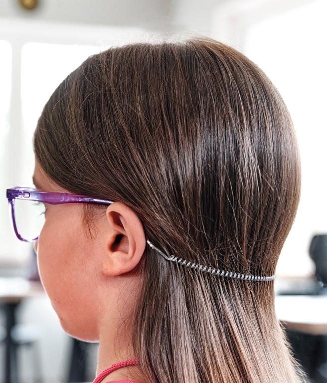 The silicone cord can be shortened to size to ensure greater adherence to the face and the maintenance of the correct optical centre.