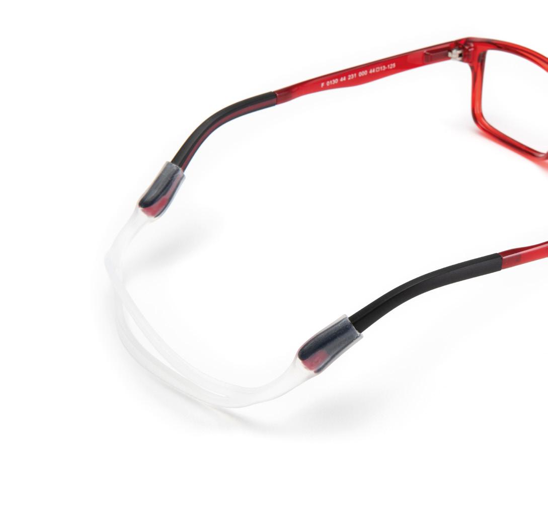 Adjustable eyeglass holder in hypoallergenic silicone. Suitable for medium size temple tips.