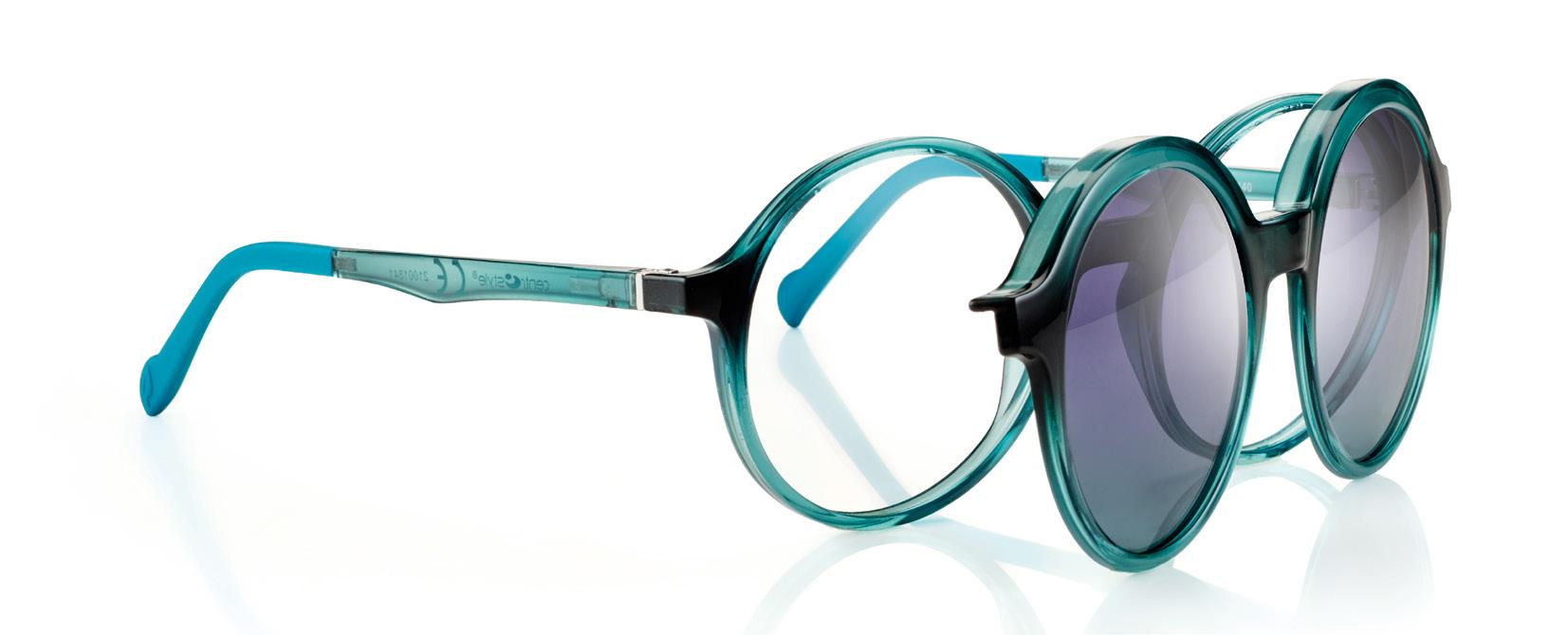 Woman Rilsan frame with shape-changing magnetic clip-on. Side with Integrated flex hinges and adjustable TPE temple tips. New hook system at the top of the magnetic clip-on for greatest adherence and hold to the frame.From prescription frame to sunglasses, the model changes its shape from cat to butterfly.